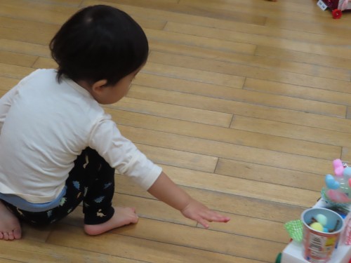 部屋に帰ってからは自分で走らせてみました。自分たちで作ったバスを押したり、動かして楽しみました。