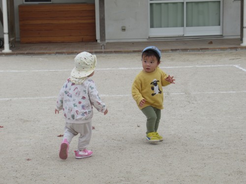「おーーーい」「こっちだよ」とハロータワーにのぼっている先生に声をかけています。