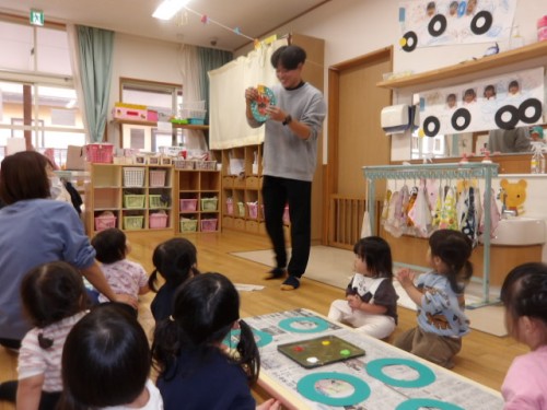 12月に入り、子どもたちと一緒にクリスマス壁面を作りました。今回は一人ひとりではなく全体で製作をしてみました。みんなが保育者の話を聞き真剣です。さて何が出来るのでしょうか?