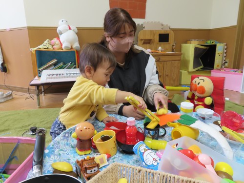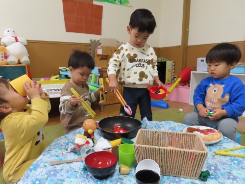 ごちそうを先生に「どうぞ」って持って来てくれたね!