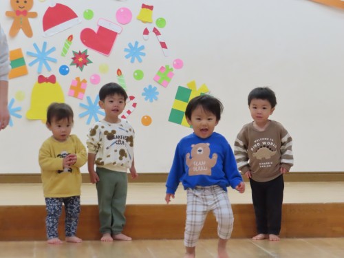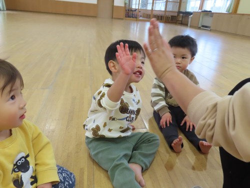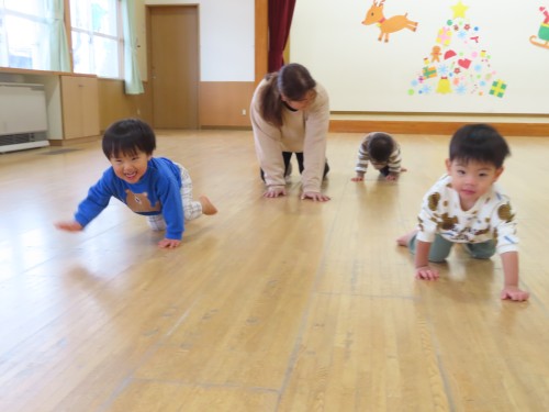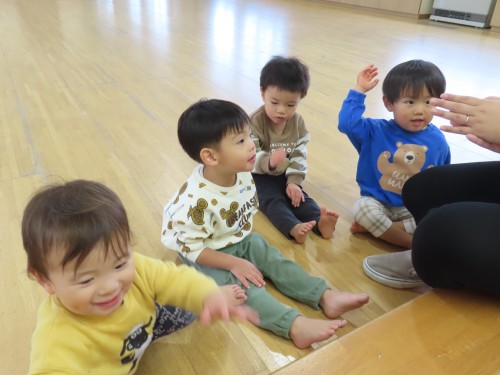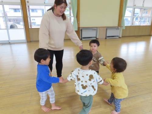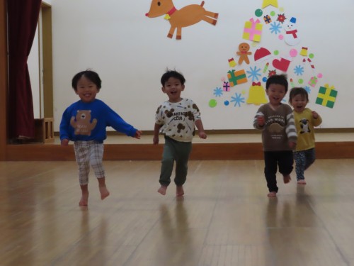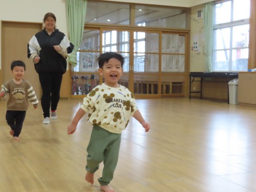 みんなでよ~いどん!をしたり、朝の会も遊戯室でしたよ