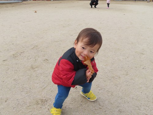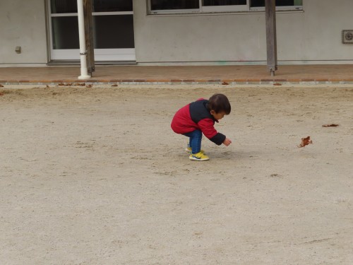 園庭に出るとたくさんの落ち葉が風にふかれておどっていたね
