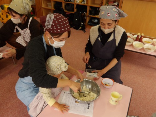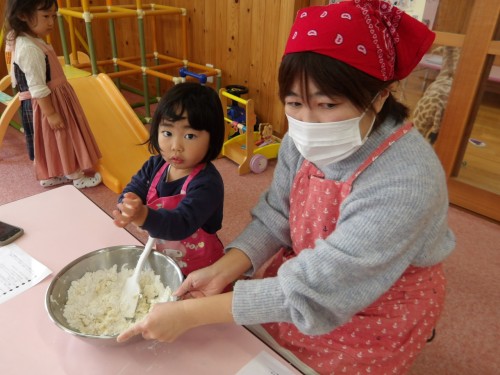 生地を混ぜ合わせてこねていきます!