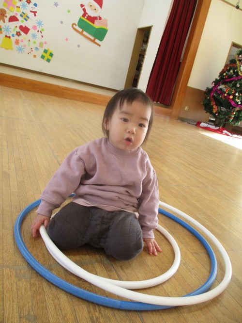 フラフープを集めて、お家みたいにしていました🏠