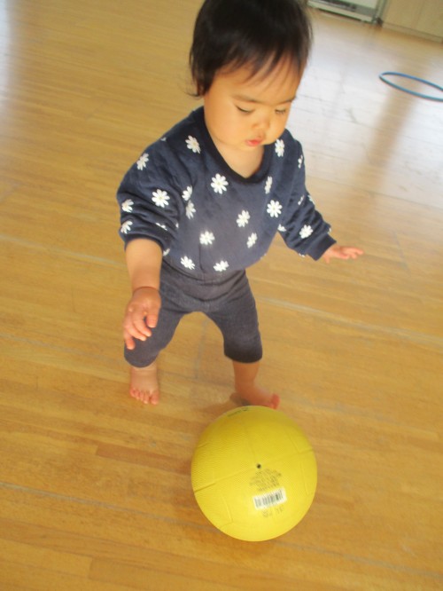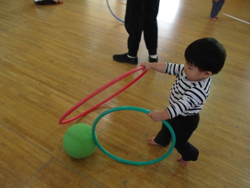 フラフープを使って、ボールを操って遊んでいました🥎