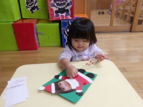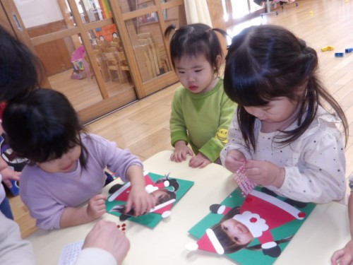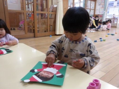 今日はサンタさんにお願いするプレゼントを入れる袋を作りました⭐子どもたちがサンタさんに変身して可愛くシールでデコレーション!どんな袋になったのか楽しみにしていてください💗