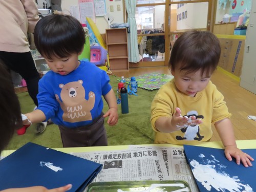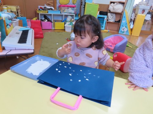 上手に人差し指で雪を描いていました。