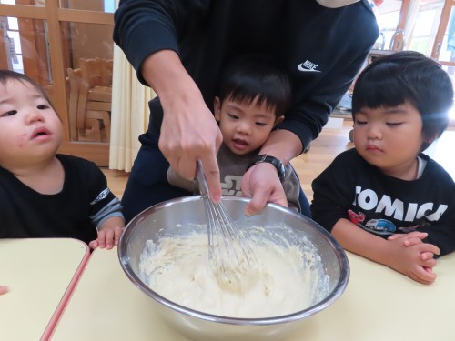 「おいしくなあれ、おいしくなあれ」と混ぜたね