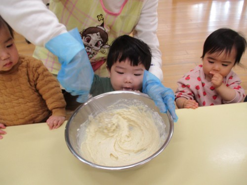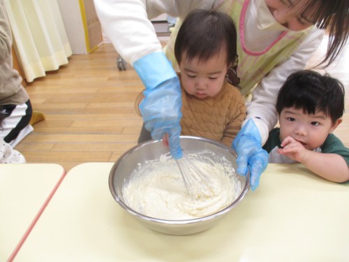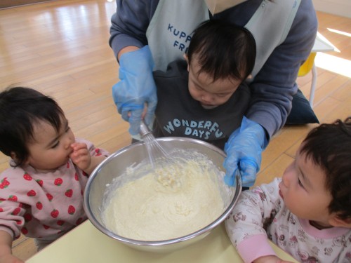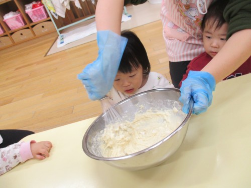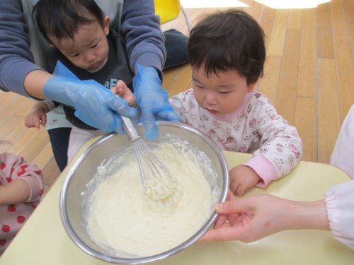 今日は朝のおやつをりす組さんと一緒に作りました!!