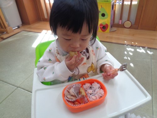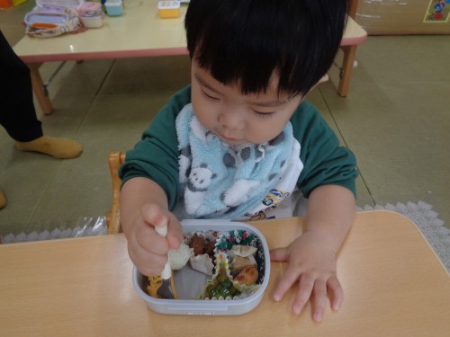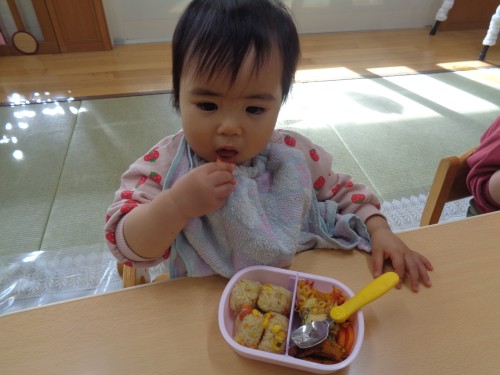 一歳児未満の子どもたちは離乳食です✨一緒にお弁当を食べられる日が楽しみだね🎵