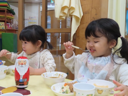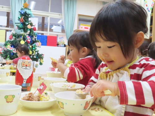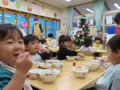 今日の給食はクリスマス献立😊
