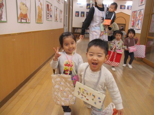 お家で作ってもらった鞄を首にかけてレッツゴ~~~🎵