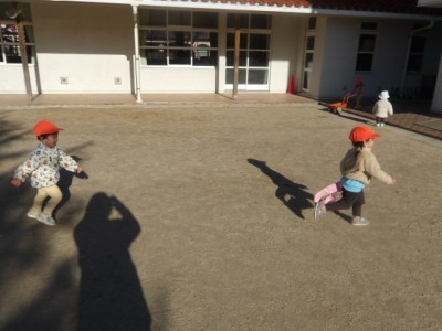 日中も気温が下がり寒くなってきましたね。りす組は太陽が出ている時は園庭や夢咲公園に遊びに出かけています!今日は園庭で元気いっぱい身体を動かして遊びました!