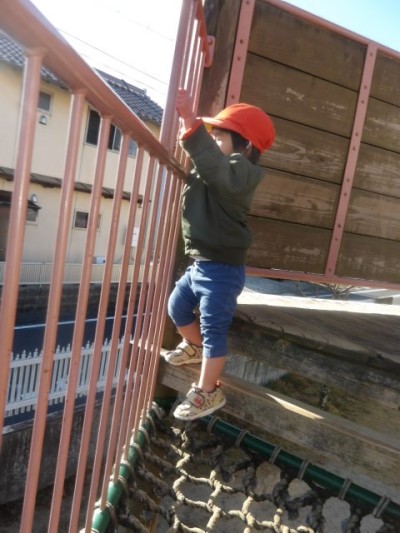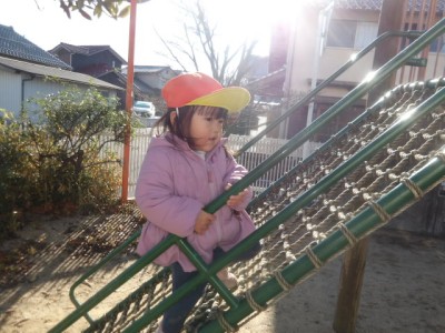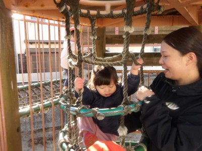 ハロータワーはりす組の子どもたちに大人気の遊具です!網々の場所や吊り橋など足場の不安定な場所でも挑戦し、身体の使い方をやりながら学んでいます👏