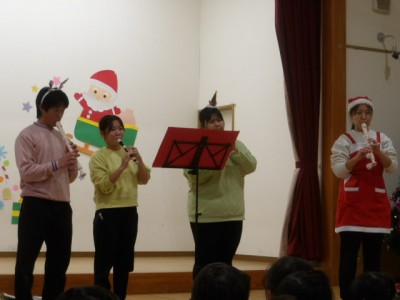 上のクラスの子どもたちの元気な歌声や職員によるクリスマスソング演奏を楽しみました✨