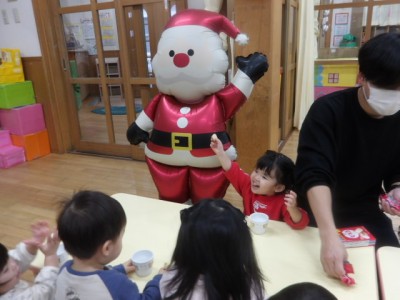 今日はクリスマスということでりす組のお部屋にサンタさんが遊びに来てくれました!
