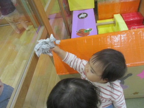 そのあとお部屋で遊んでいると、りす組さんが窓ふきをしておられてので、ひよこ組も真似っこしました⭐