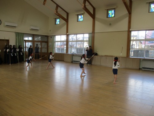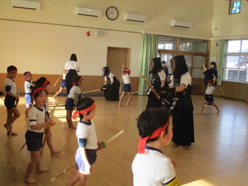 今日は「寒稽古」がありました。防具を着たお兄さんお姉さんに剣道となぎなた教えてもらいました。