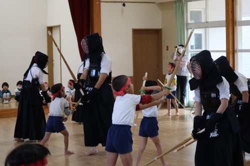 防具を着たお兄さんお姉さんに「めん!!」と打ってみることもしました。
