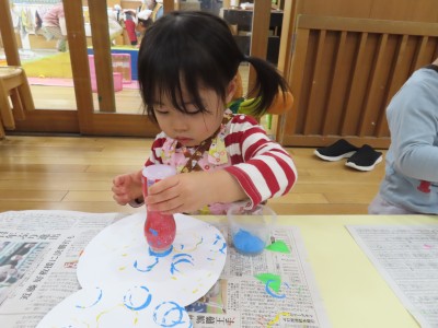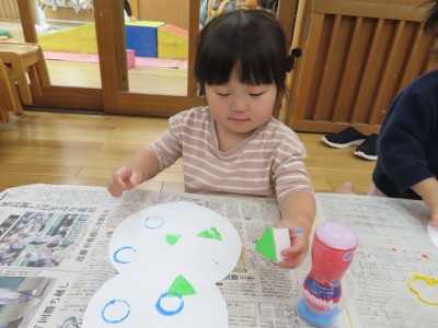 指先が上手に使えるようになり、長さのあるスタンプでも上手にポンポンして製作を楽しむことが出来ました!