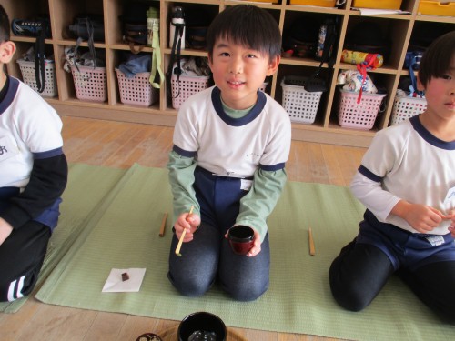 「お茶にがい」「美味しい!!」「粉を入れるのが難しい」とたくさん言っていました。