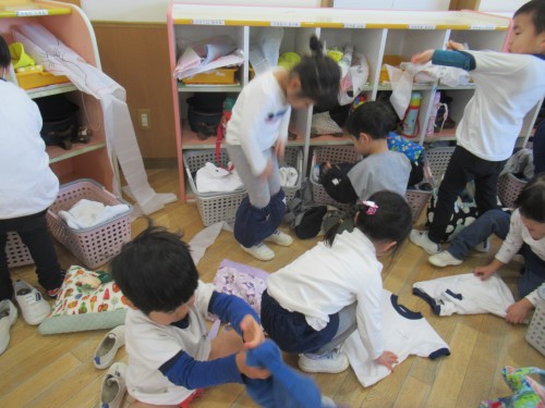 そんな中、今日ははと組さんと着替えの競争をしました!!