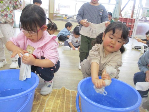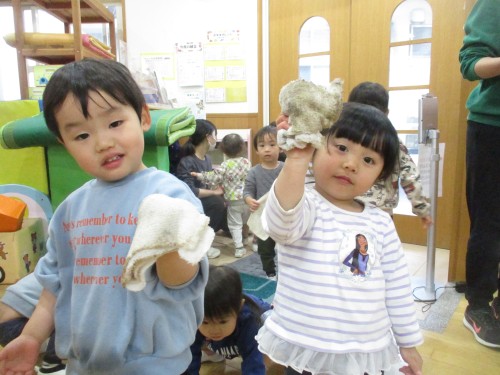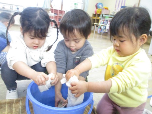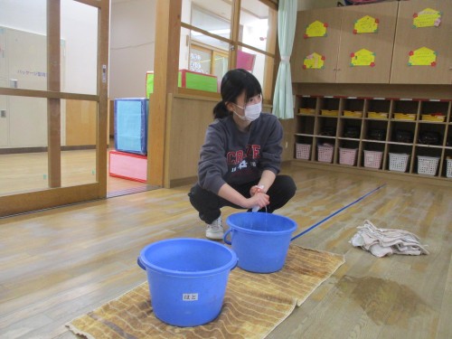 1月の清掃の日は、雑巾の絞り方を教えてもらい、