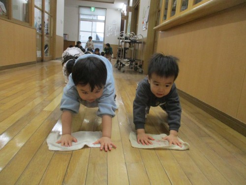 保育室や廊下を雑巾がけをしました✨