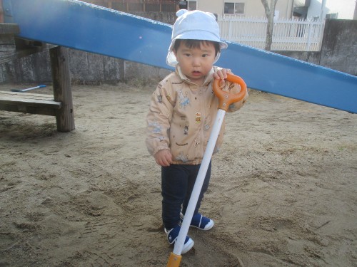 自分の身長と同じくらいのスコップを手に入れていました!