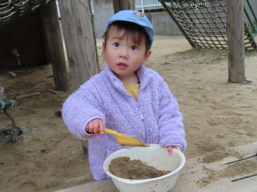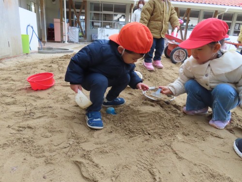 砂場ではひばり組のお兄さんお姉さんとケーキを作っていたね⭐