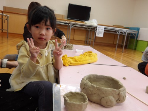 今日は、8組の親子と陶芸教室をしました😊