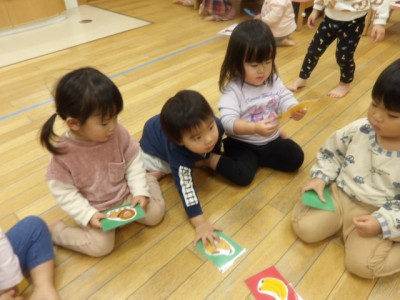 カルタでは保育者が絵札の名前を言うと、上手に取ったり、指をさしたり、保育者と同じ言葉を言ってみたりなど楽しみました✨