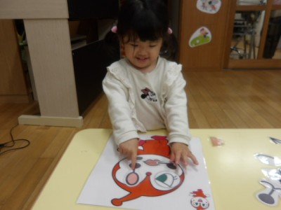 福笑いではいろんなパーツを探して何もない顔の上に置いて遊びました!目の位置や鼻の位置なども分かるようになりました✨