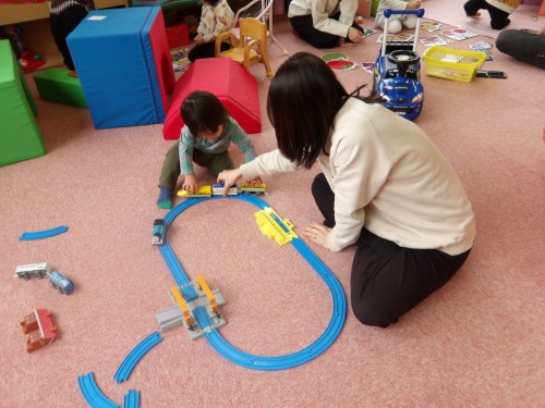 プラレールがつながったね!