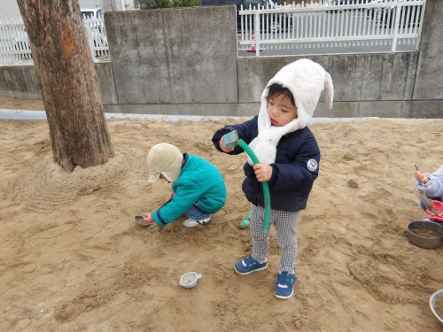 園庭で遊んだりえがおハウスの中でも遊びました😊