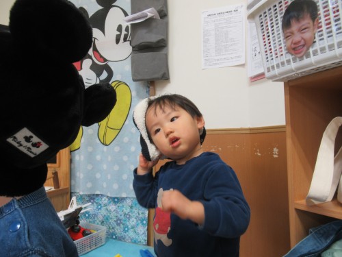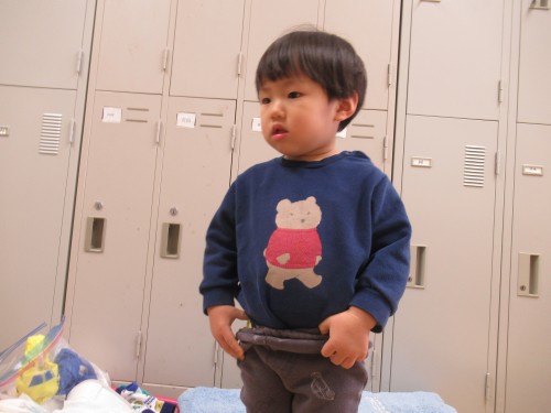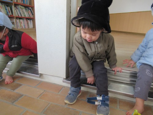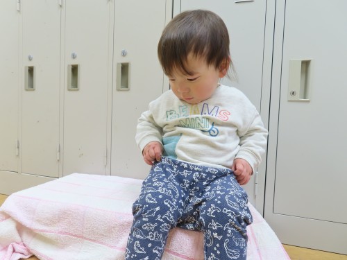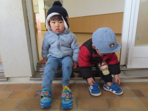 かもめ組では自分で靴をはいたり、自分でズボンをはいたり、自分で帽子や上着を着ることを頑張っています。