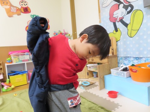 みんな手先が器用になってきて上着のファスナーやボタンも自分で止めれるようになってきました