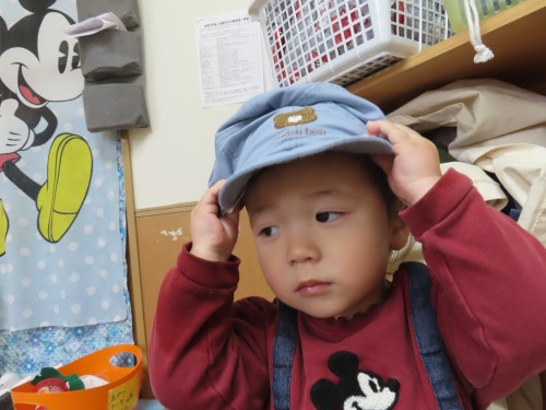 帽子も自分で被るよ☆