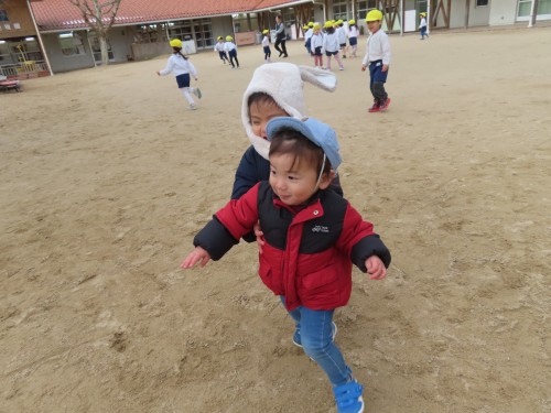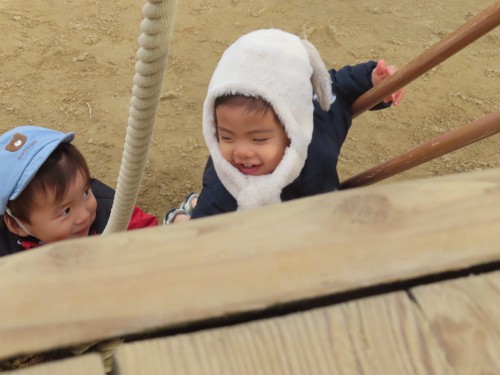 園庭では走ったり、ハロータワーに登って遊んだり寒いけど楽しんで遊んでいました⭐