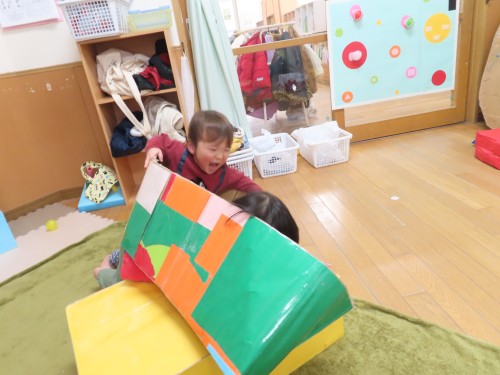 お部屋では電車ごっこをして遊んでいます。