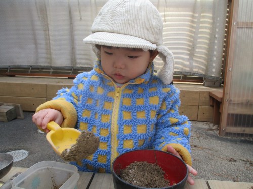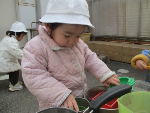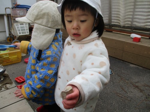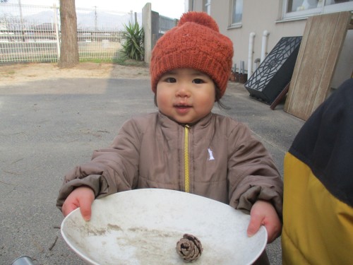 松ぼっくりを食べるふりをしたり、」コップで飲む真似をしたりとままごとが上手になってきましたよ☆