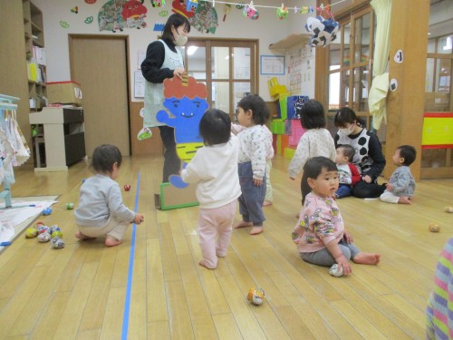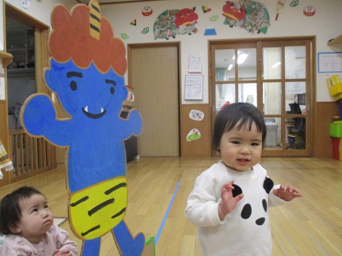 この鬼が怖くて逃げる姿や、楽しくボールを投げる姿など様々な姿が見られました!