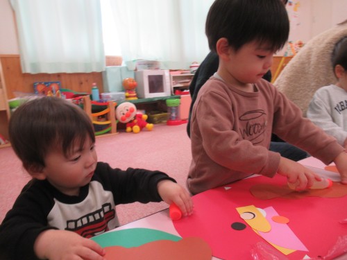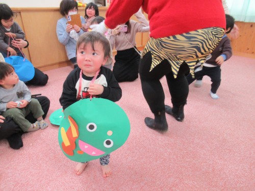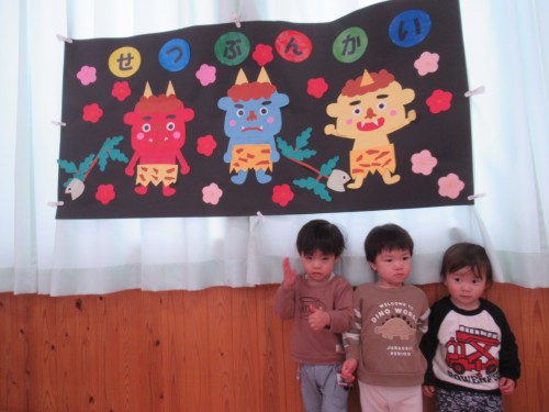 こども園も節分会があり、かもめ組さんはえがおハウスの節分会に参加しました😊