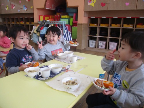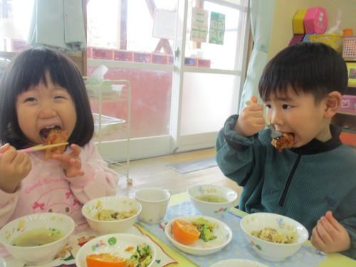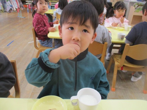 美味しい給食とおやつを食べて元気パワー満タンです💕