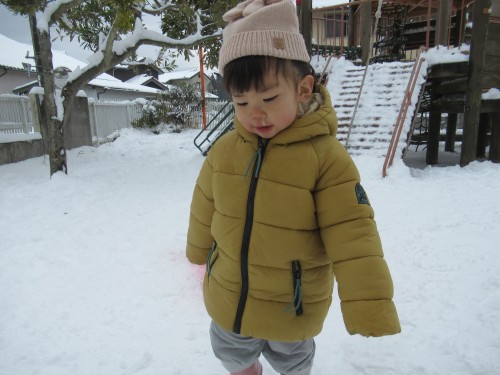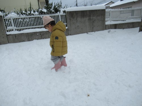 今日はお休みに降った雪で園庭が真っ白になっていましたよ!