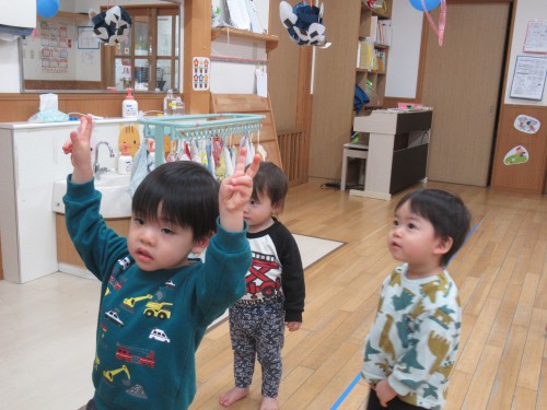 体操をしたり、部屋でごっこ遊びをして遊んだね!