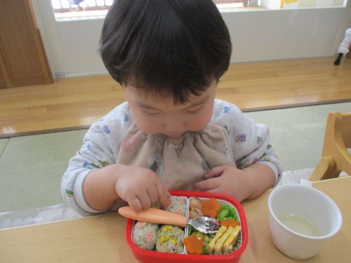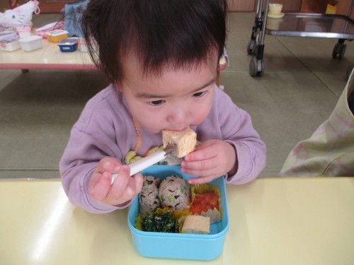 1歳未満の子どもたちは離乳食なので、1歳になったらみんなでお弁当を食べれるのを楽しみにしています🎵