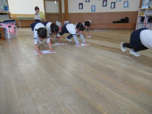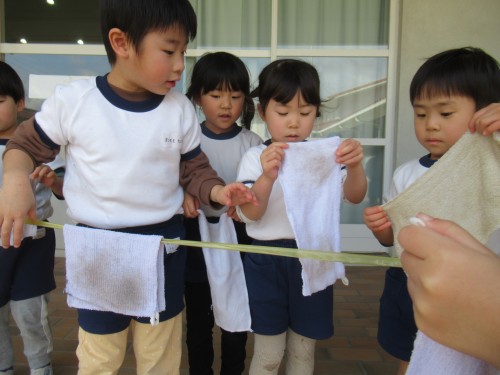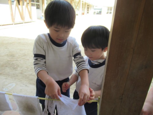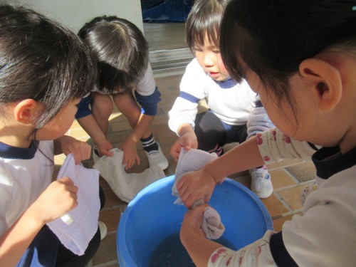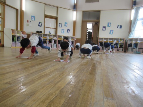 はと組さんに教えてもらいながら雑巾がけをしました。