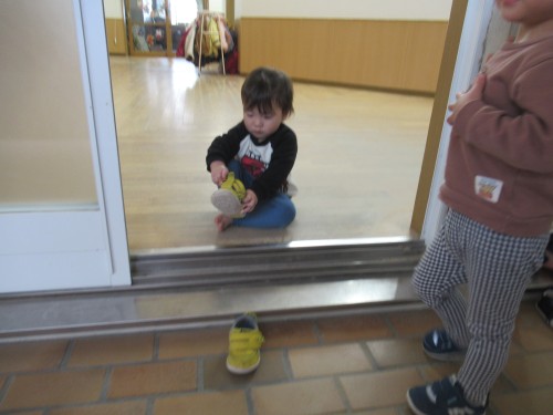 えがおハウスに行く前に自分で靴も履くよ☆彡