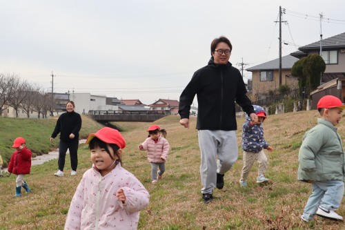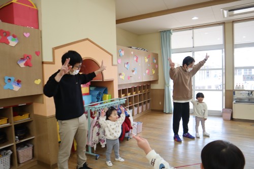 お父さん、お母さんと一緒に保育園で遊べて、